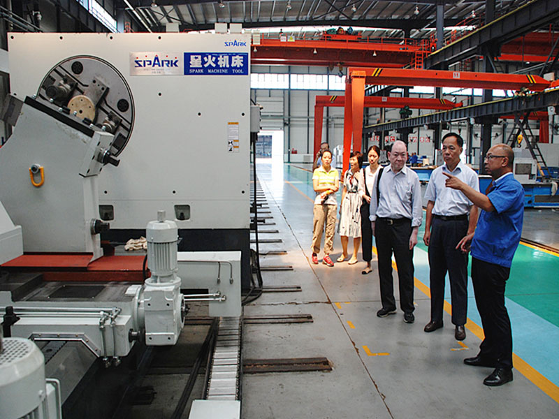 在蔣俊的陪同下,李國鋒、陳士發(fā)一行參觀了大型裝配分廠、數(shù)控精密分廠和大件加工分廠、噴包分廠生產現(xiàn)場。參觀過程中,蔣俊向客人介紹了企業(yè)發(fā)展歷程、目前經營狀況、工業(yè)園建設情況及公司在行業(yè)的地位、產品研發(fā)和市場銷售情況。