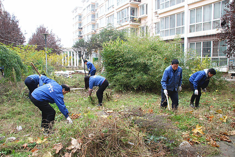 下午 2點一上班,參加學雷鋒義務勞動的10個黨支部的60多名黨員在生活區(qū)球場集中,黨委工作部部長姚保忠安排了此次主題教育的規(guī)定動作——學雷鋒志愿活動。物業(yè)公司經(jīng)理張巨宏首先強調了參加義務勞動的安全注意事項,并根據(jù)不同區(qū)域的工作量,分配了具體任務。黨員學雷鋒義務勞動主要為清理5#樓——9#樓周邊垃圾、雜草、樹葉,打掃衛(wèi)生以及清理5#—9#樓各樓道內(nèi)的垃圾,保證消防通道暢通。各組領受任務之后,立即分頭行動,大家有的拿鐵鍬,有的拿掃把,有的割草、有的揀垃圾,干的熱火朝天。剛出差回來的黨委副書記蔣俊也參加到義務勞動的行列,清理雜草、樹枝、垃圾,有的同志沒有工具就用手揀垃圾。姚保忠、張巨宏一邊協(xié)調聯(lián)系垃圾清運車輛,一邊參加義務勞動。有的支部書記親自帶隊參加,有的支部因工作任務只有部分黨員參加,但大家都干的非常認真。到下午4點鐘,有的支部負責的區(qū)域衛(wèi)生已經(jīng)打掃完畢,就主動幫助其他同志,有的則到指定區(qū)域外清理垃圾。有的職工家屬看黨員干的滿頭大汗說:還是黨員好!