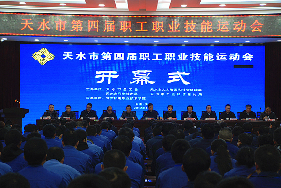 9點鐘,天水市第四屆職工職業(yè)技能運動會在甘肅機電職業(yè)技術(shù)學院開幕,甘肅省總工會副主席張愛華,天水市政協(xié)副主席王振宇,市長助理李敬峰,省總工會職工技協(xié)辦公室主任周建平,甘肅機電職業(yè)技術(shù)學院黨委書記、院長堅葆林,副院長張德龍,市總工會、市人社局、市科技局、市工信局等主辦單位領(lǐng)導(dǎo)出席。