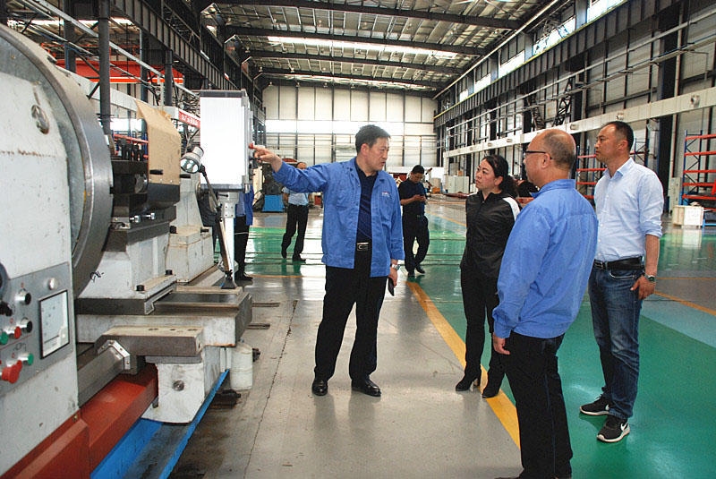 王雪芹一行來到機(jī)械裝備公司生產(chǎn)現(xiàn)場(chǎng),參觀了不同系列的機(jī)床產(chǎn)品。劉勝匯報(bào)了企業(yè)推進(jìn)“三化”改造工作情況,并對(duì)公司各類產(chǎn)品的用途、性能一一作了介紹。(康永明)
