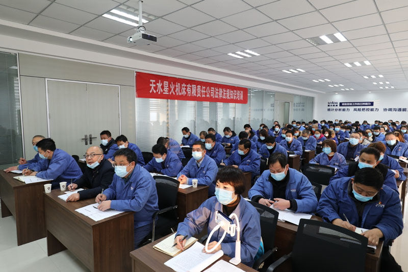 2月5日,星火機(jī)床公司邀請(qǐng)?zhí)焖兄屑?jí)人法院民二庭庭長(zhǎng)李蘭、蘭州合睿法律事務(wù)所律師魯和平、張文強(qiáng)舉辦法律法規(guī)知識(shí)培訓(xùn)。此次培訓(xùn)旨在增強(qiáng)員工法律意識(shí),掌握與工作相關(guān)的法律知識(shí),提高風(fēng)險(xiǎn)防范技能,減少因法律知識(shí)欠缺、法律意識(shí)淡薄等問(wèn)題引發(fā)的法律糾紛,維護(hù)公司合法權(quán)益,保證企業(yè)健康有序發(fā)展。