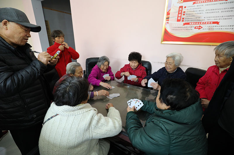 早上八點多,老職工陸續(xù)來到老年活動中心。九點鐘,撲克比賽正式開始。一時間,活動室內(nèi)人頭攢動,笑聲不斷。參加活動的老職工在工作人員的組織下,六人一組,自愿組合,打撲克爭上游,一局定勝負。比賽現(xiàn)場,每張桌子前都擠滿了圍觀者。參賽者緊張有序,圍觀者興奮不已。有的是夫妻雙雙上陣,有的是兩代人共同參與。為使老職工過一個歡樂愉快的重陽節(jié),公司在資金緊張的情況下,為老職工購買了紀念品?;顒咏Y(jié)束后,參加活動的老同志拿著紀念品,帶著滿臉笑容,高高興興的離去。