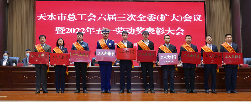4月29日,天水市總工會召開六屆三次全委(擴大)會議暨2022年五一勞動獎表彰大會,全市各條戰(zhàn)線涌現(xiàn)出的9個先進集體、20名先進個人、10個先進班組分別被授予天水“五一勞動獎狀”“五一勞動獎章”和“工人先鋒號”,受到大會表彰。