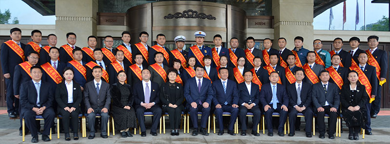 會前,與會領導與受到表彰的人員合影。