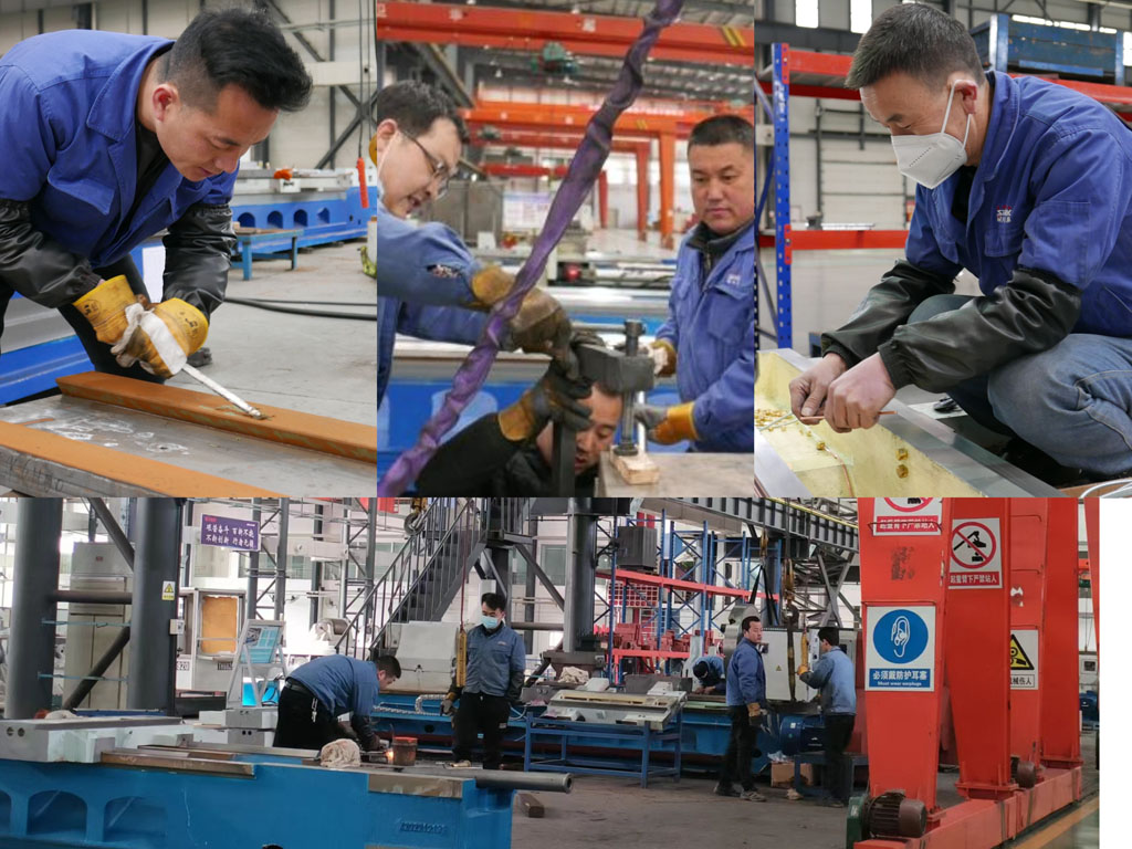 進(jìn)入機(jī)床裝備公司,到處可見三三兩兩的職工們相互配合、組裝零部件的景象。他們有刮研的,有鉆眼的……零件在他們手里起起落落,動(dòng)作是那樣?jì)故?。相信此刻的他們?cè)缍及堰^年這回事拋之腦后了。