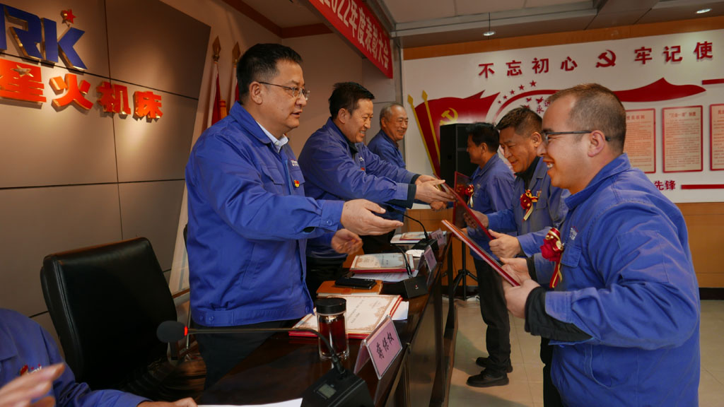 集團(tuán)公司黨委副書記、總經(jīng)理劉勝宣讀表彰決定。決定授予星火鑄造公司等3個(gè)單位先進(jìn)集體稱號(hào);星火機(jī)械制造公司磨床班組等3個(gè)班組先進(jìn)班組稱號(hào);張效忠等15名同志先進(jìn)工作者稱號(hào);楊博等3名同志為銷售、售后服務(wù)先進(jìn)工作者。公司希望受到表彰的先進(jìn)集體、先進(jìn)班組和先進(jìn)工作者不忘初心,開拓進(jìn)取。廣大員工要以先進(jìn)為榜樣,努力工作,在2023年取得更大進(jìn)步。
