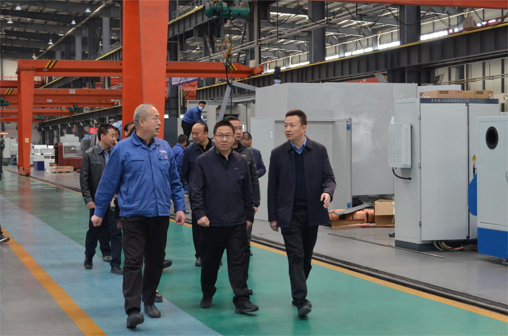 調(diào)研組一行在參觀機(jī)床裝備公司裝配現(xiàn)場(chǎng)時(shí),冉小平和趙錦銘親切交流。趙錦銘向調(diào)研組一行介紹了企業(yè)生產(chǎn)經(jīng)營(yíng)、技術(shù)創(chuàng)新等情況。