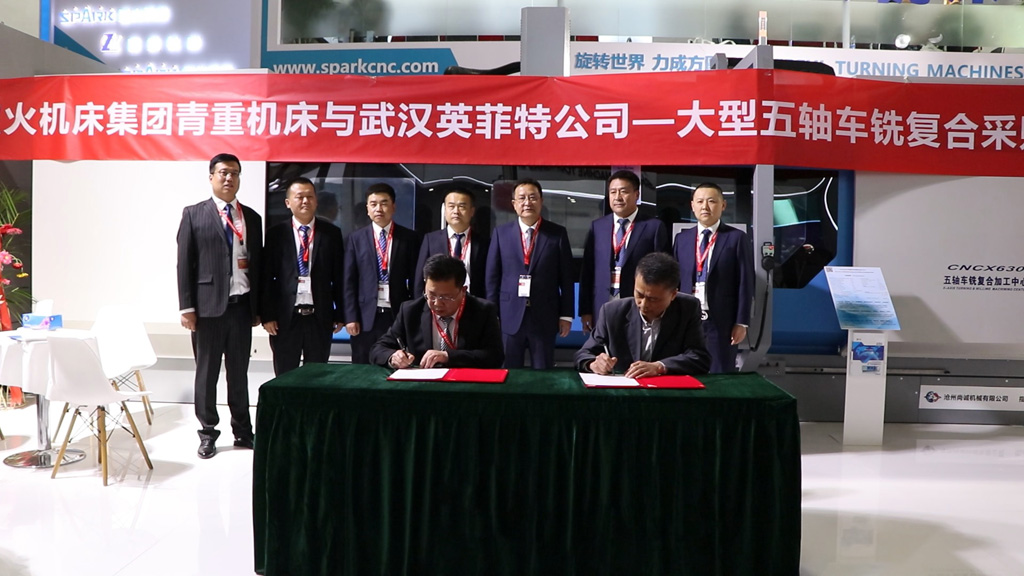 4月11日,星火機(jī)床集團(tuán)青重機(jī)床在展會(huì)現(xiàn)場(chǎng)與客商簽訂大型五軸車銑復(fù)合采購(gòu)項(xiàng)目合同。