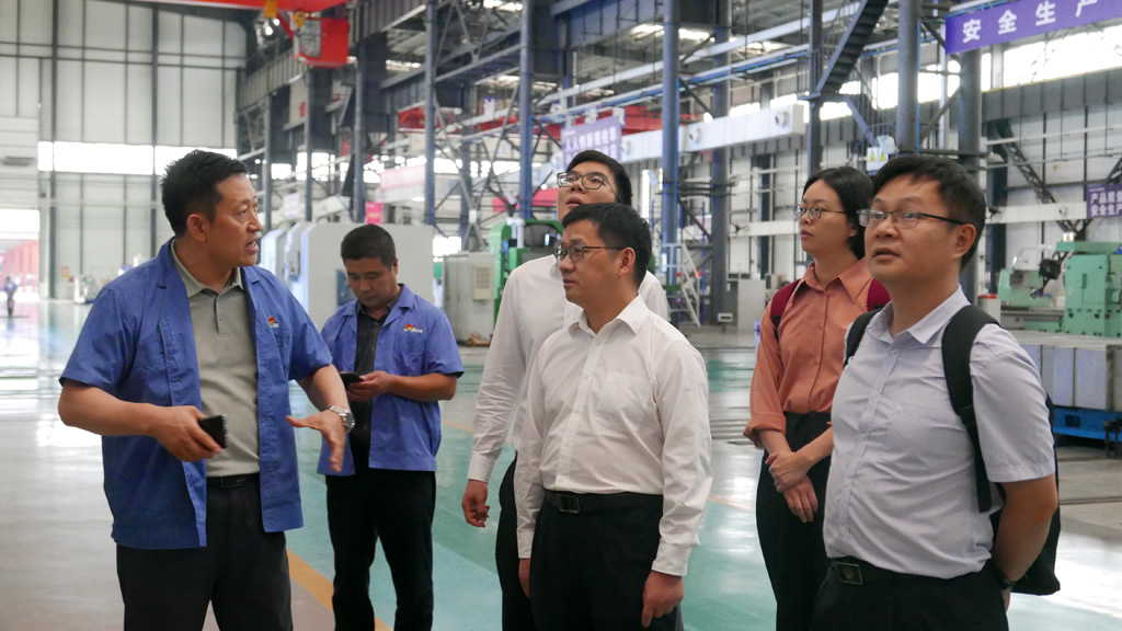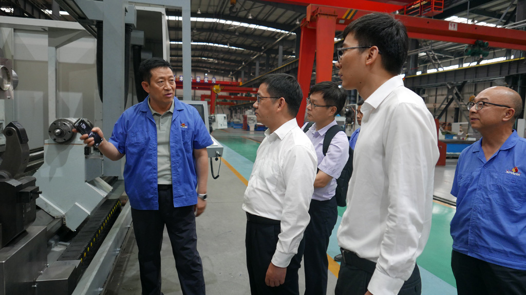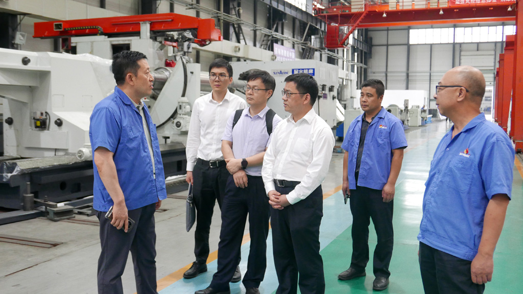 在星火公司生產(chǎn)現(xiàn)場(chǎng),劉勝向陳新文一行詳細(xì)介紹了公司發(fā)展歷程、產(chǎn)品種類、加工能力、技術(shù)創(chuàng)新、未來(lái)發(fā)展規(guī)劃等,并陪同參觀了公司研發(fā)生產(chǎn)的各類大、重型機(jī)床,復(fù)合材料纏繞設(shè)備等。
