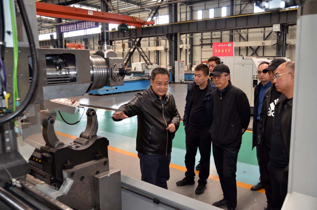 蔣保權等陪同敬君生一行參觀了公司研發(fā)生產(chǎn)的大重型機床、五軸聯(lián)動數(shù)控精密機床、復合材料纏繞設備,以及星火青重公司生產(chǎn)的車輪車床、軋輥車床等用于國民經(jīng)濟各行業(yè)和航空、軍工、船舶、核電、鐵路等領域的各種新產(chǎn)品,并介紹了產(chǎn)品的工作原理、市場份額及企業(yè)發(fā)展前景。