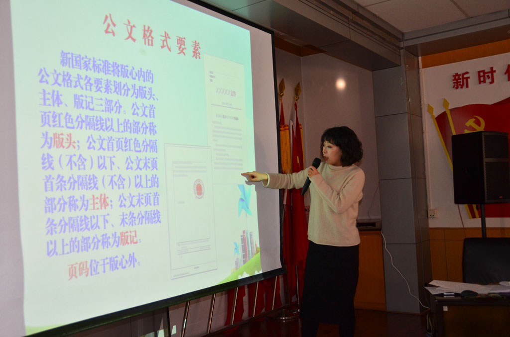 為提高員工的公文寫作和業(yè)務(wù)能力,提高管理水平和工作效率。12月19日,星火機床集團公司邀請?zhí)焖姓k公室文電科科長馬晶來公司進行公文寫作知識培訓(xùn)。公司中層及以上管理干部、各部門相關(guān)單位業(yè)務(wù)人員近100人參加。