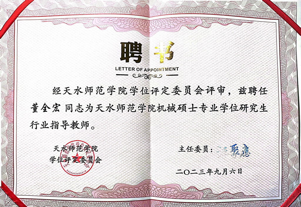 劉勝代表星火機床公司與天水師范學院簽署《機械碩士專業(yè)研究生聯(lián)合培養(yǎng)協(xié)議》,并與天水師范學院院長汪聚應為星火機床公司與天水師范學院“機械碩士專業(yè)學位研究生聯(lián)合培養(yǎng)基地”揭牌。星火機床公司專用機床總設計師董全宏被聘為天水師范學院機械專業(yè)研究生行業(yè)導師,汪聚應向其頒發(fā)了聘書。