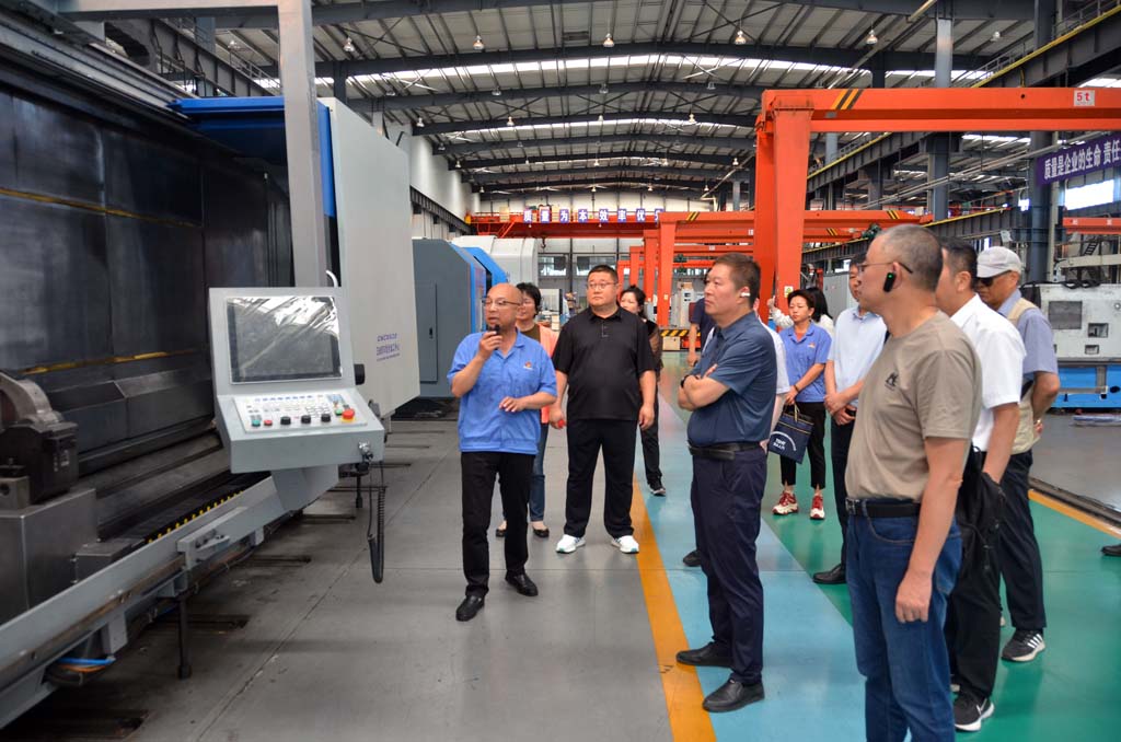 星火機(jī)床集團(tuán)公司黨委副書記、副總經(jīng)理蔣俊在陪同參觀生產(chǎn)現(xiàn)場時(shí),向前來參觀調(diào)研的客人重點(diǎn)介紹了企業(yè)發(fā)展歷程,以及公司作為國家重點(diǎn)產(chǎn)品“鏈主”企業(yè)、甘肅省高檔數(shù)控機(jī)床產(chǎn)業(yè)鏈“鏈主”企業(yè),為我國重點(diǎn)領(lǐng)域研發(fā)生產(chǎn)的高精尖產(chǎn)品、適用于有色金屬行業(yè)特點(diǎn)的大型、重型產(chǎn)品的技術(shù)水平,以及企業(yè)目前的國內(nèi)行業(yè)地位、改革改制工作,并參觀了星火機(jī)床子公司青重公司生產(chǎn)的車輪車床等具有行業(yè)領(lǐng)先優(yōu)勢(shì)的特色產(chǎn)品。