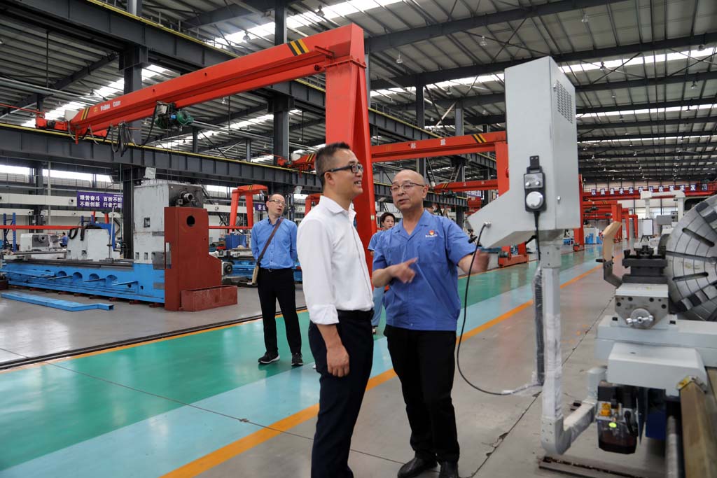 周勝一行在蔣俊陪同下深入工業(yè)園加工車間、裝配車間以及青重公司生產(chǎn)車間,參觀了裝配中的各類車床產(chǎn)品,了解了車床裝配流程。考察中,蔣俊就公司生產(chǎn)經(jīng)營、市場規(guī)模、智能制造、人才培訓、科技研發(fā)等情況向周勝一行作了介紹,并結合裝配中的產(chǎn)品介紹了五軸聯(lián)動機床、軋輥磨床以及青重車輪車機床等產(chǎn)品的性能特點、市場前景以及應用領域等。蔣俊說,星火機床作為曾經(jīng)的“三線”企業(yè),經(jīng)過多年的摸爬滾打,在地區(qū)裝備制造業(yè)中占有一席之地,近年來,公司搶抓國家大力發(fā)展裝備制造業(yè)的機遇,堅持以市場為導向進行創(chuàng)新研發(fā),開發(fā)了一系列新產(chǎn)品,得到了市場的認可。