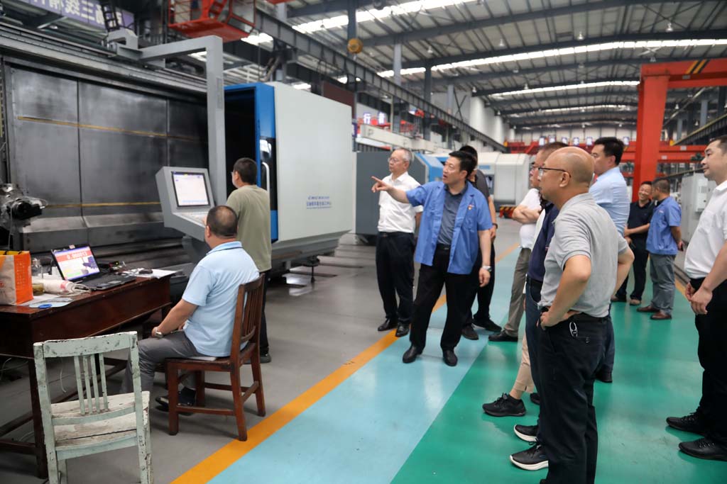 戴岸彤一行在星火集團(tuán)公司領(lǐng)導(dǎo)劉勝、蔣俊的陪同下深入公司生產(chǎn)加工車間,了解企業(yè)生產(chǎn)流程、產(chǎn)品種類以及設(shè)備配置等情況。在青重加工車間,雙方領(lǐng)導(dǎo)進(jìn)行了深入的交流和探討,就機(jī)床行業(yè)的發(fā)展趨勢(shì)、技術(shù)創(chuàng)新以及市場(chǎng)需求等方面進(jìn)行了熱烈的討論。戴岸彤一行對(duì)星火在機(jī)床制造方面的專業(yè)能力表示了贊賞,對(duì)星火公司的技術(shù)實(shí)力和取得的成就給予了充分肯定。