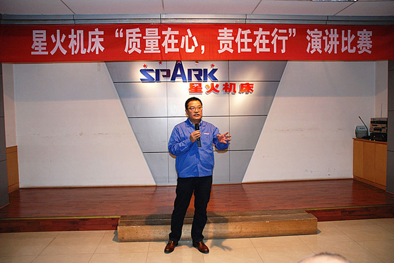 演講結(jié)束后,集團公司董事長蔣保權(quán)講話。他首先通過自己的或親身經(jīng)歷、或親眼所見的國外企和公司員工中發(fā)生的故事,說明了不同的人、不同的企業(yè)對質(zhì)量的不同態(tài)度,以及最終的不同結(jié)果。蔣保權(quán)指出,質(zhì)量在哪里?質(zhì)量就在我們每個人的行動中,在每個人的態(tài)度上?!拔覀冎挥凶龅母?,我們別無退路”。組織演講比賽,就是要喚醒大家的質(zhì)量意識,不能只說,而且要做,要體現(xiàn)在行動上。同時要提升大家的表達能力、溝通能力、組織能力等綜合素質(zhì)。只有每個人都認識到自己肩上的責任,都把自己的工作做好,明天燦爛的陽光就是屬于你的,就是屬于星火機床的。相信只有大家共同努力,星火的明天一定是美好的。(石廣謀)