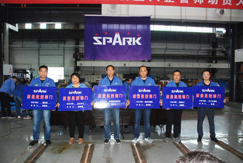 5月5日,星火公司召開“星火興亡,我的責(zé)任”質(zhì)量興企誓師動(dòng)員大會(huì)。星火集團(tuán)及星火機(jī)床公司領(lǐng)導(dǎo)蔣保權(quán)、劉勝、趙錦銘、鞠家兵、劉生玉、劉強(qiáng)、展海瑜,各處室領(lǐng)導(dǎo)、各分廠領(lǐng)導(dǎo)、班組長等骨干人員、計(jì)量檢查處全體員工240余人參加大會(huì)。星火集團(tuán)黨委副書記、副總經(jīng)理蔣俊主持會(huì)議。
